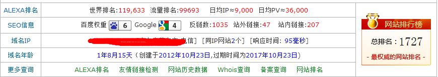 一般情況之下站長們都認為首頁權(quán)重高了,自然可以帶動內(nèi)頁從而獲得高流量和高排名,所以90%的站長都是從首頁與目標關(guān)鍵詞開始入手優(yōu)化網(wǎng)站。但是今天筆者的方法恰恰與大家相反,這是我半年之前開始優(yōu)化的一個網(wǎng)站,完全從內(nèi)頁與長尾關(guān)鍵詞出發(fā),達到提升全站權(quán)重的一種方法。下面是這個網(wǎng)站的截圖: