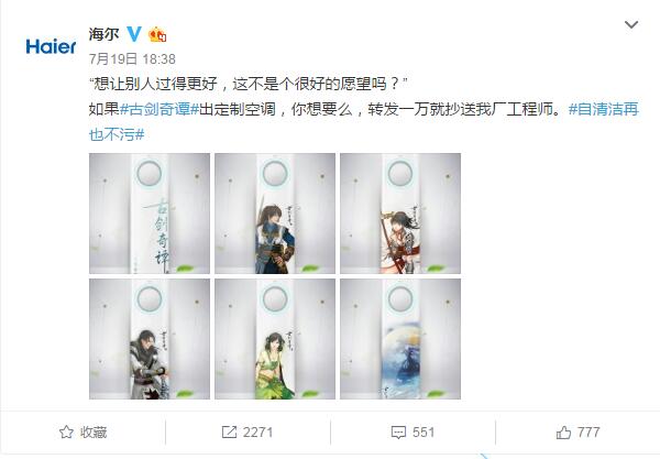 說(shuō)到海爾,大家的第一印象大多都是搶熱門(mén)。比如唐嫣羅晉公布戀情時(shí),海爾官微借勢(shì)發(fā)布微博"啥時(shí)候成親?需要冰箱空調(diào)洗衣機(jī)么"成功帶領(lǐng)了一眾藍(lán)V搞事情,因?yàn)檫@個(gè)句式很容易被模仿,所以藍(lán)V的參與度非常高。